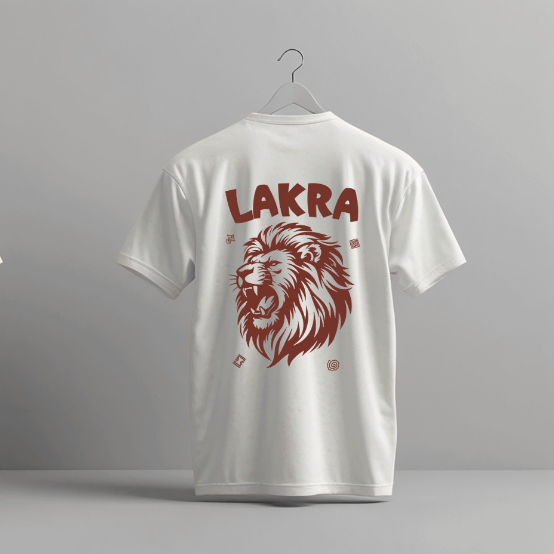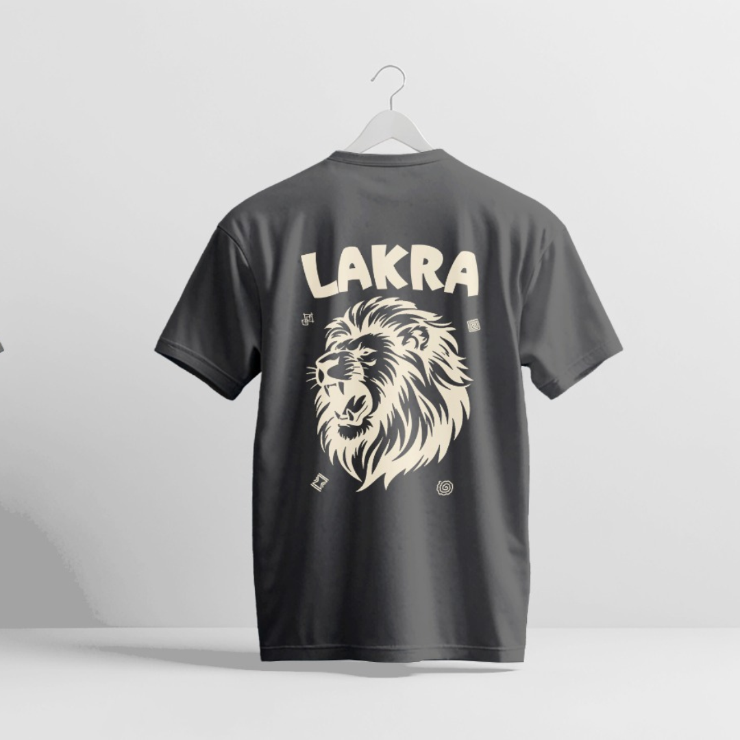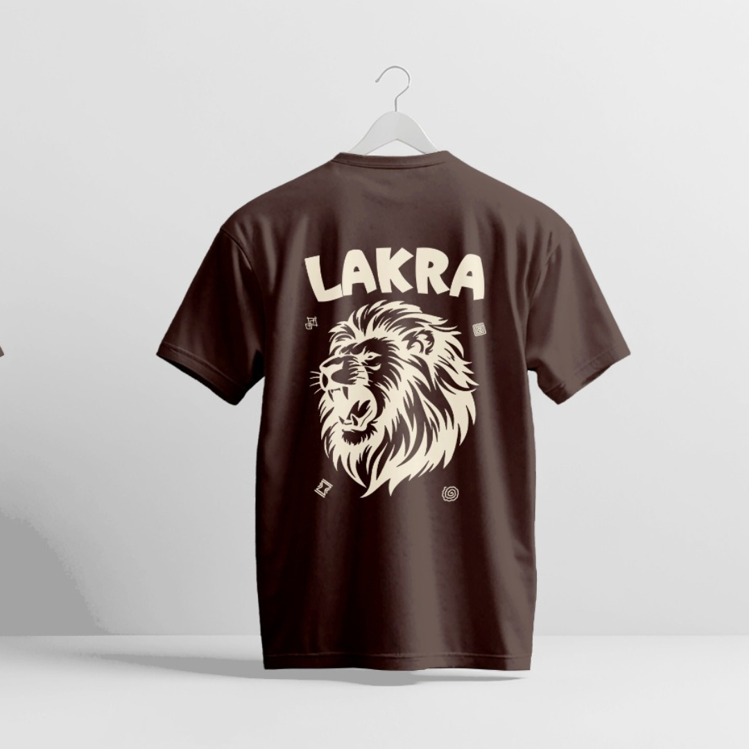The front showcases a clean Lakra insignia with a detailed lion mark for a subtle everyday look. The back stands out with strong Lakra typography and a striking full-scale lion graphic in earthy red tones. The design blends cultural symbolism with modern streetwear appeal, making it both meaningful and stylish.