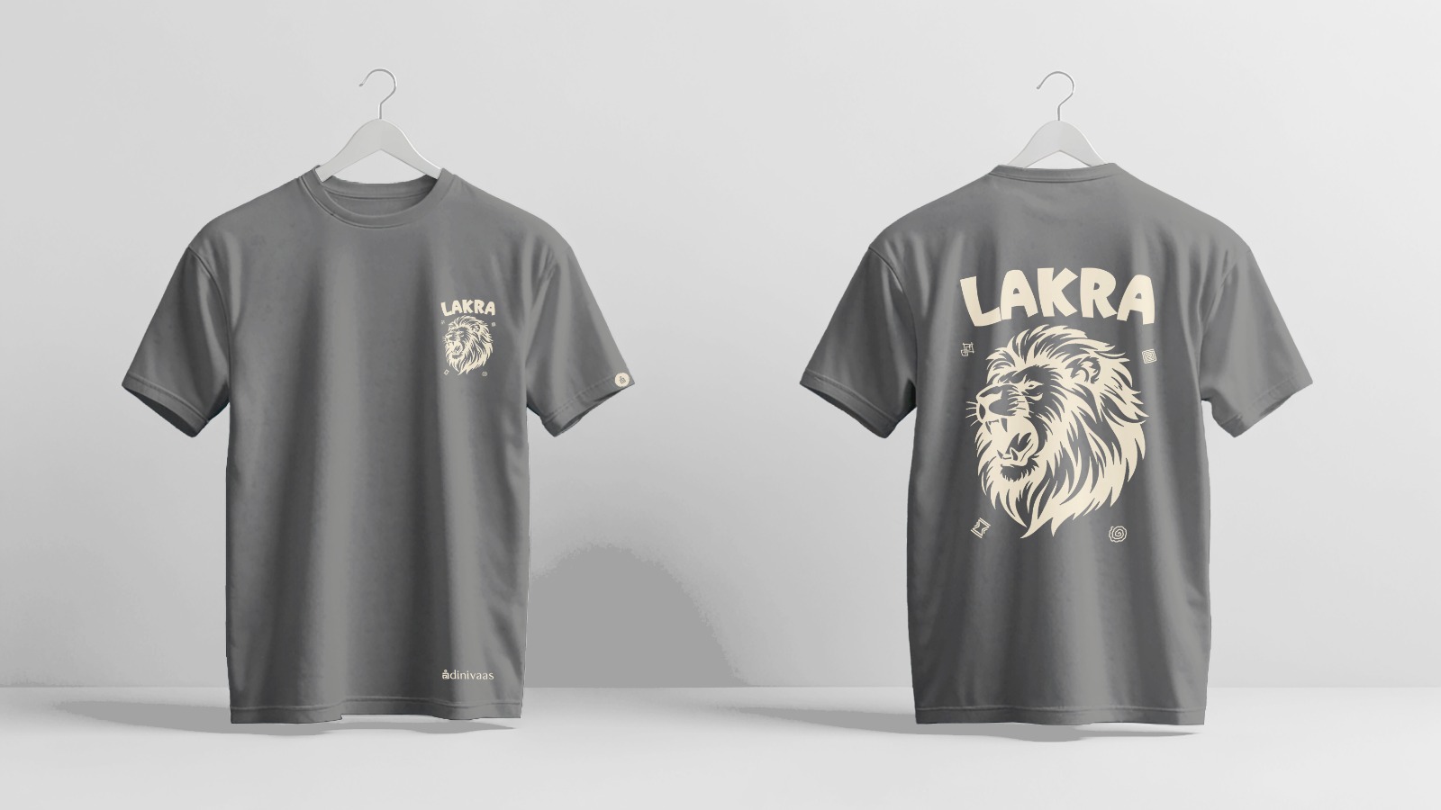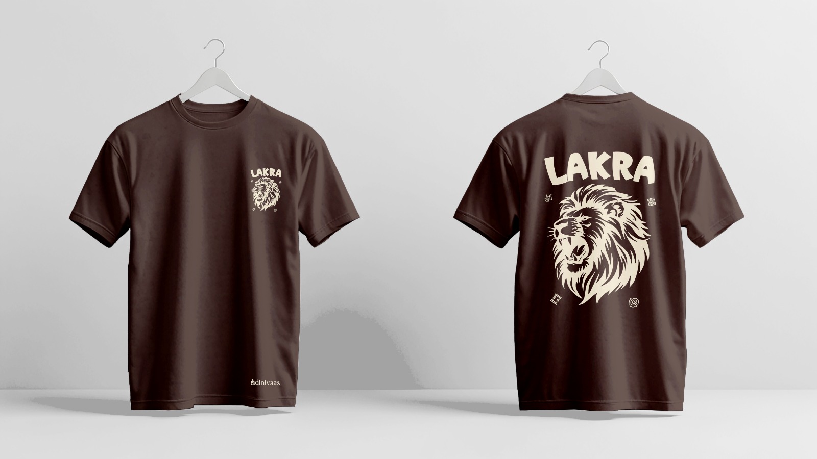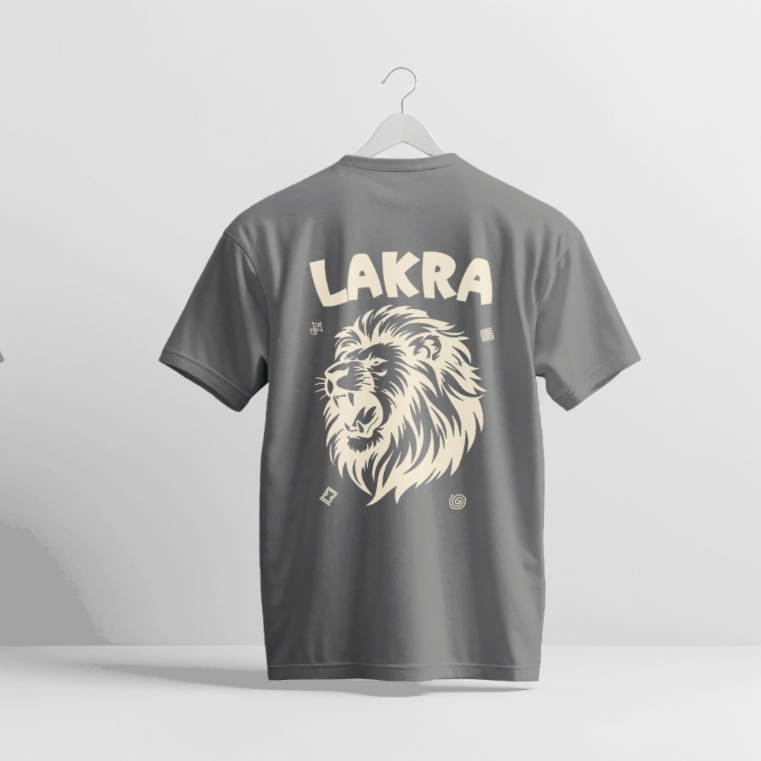 The front showcases a clean Lakra insignia with a detailed lion mark for a subtle everyday look. The back stands out with strong Lakra typography and a striking full-scale lion graphic in earthy red tones. The design blends cultural symbolism with modern streetwear appeal, making it both meaningful and stylish.